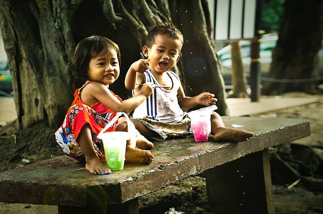 还有这个把果汁让给妹妹吃的小男孩,摆出一地花瓣不收拍照费的路人甲姑娘。
