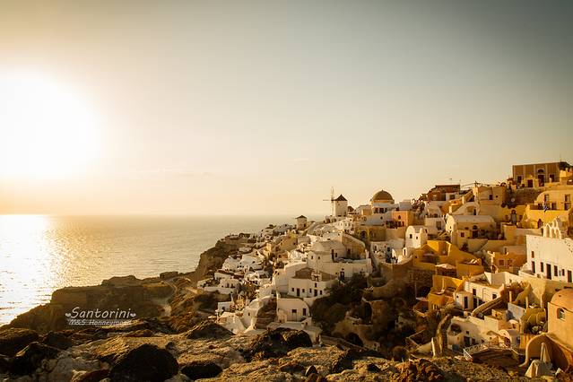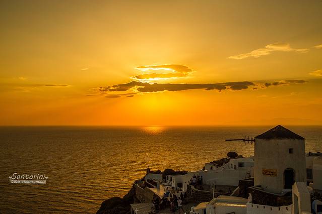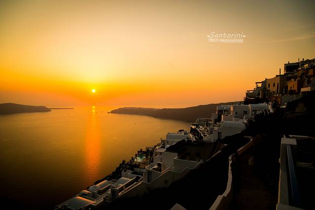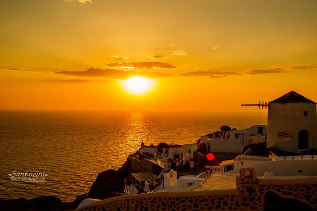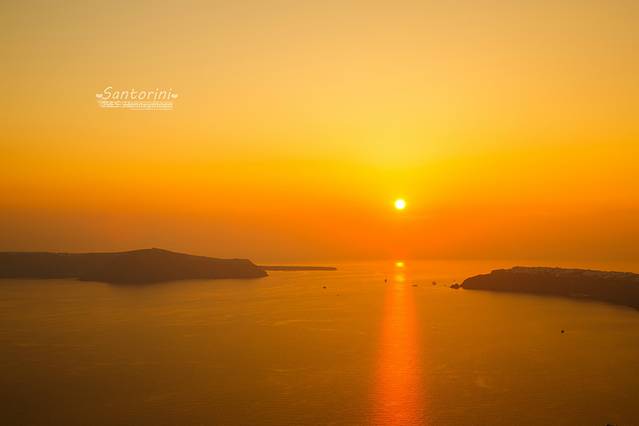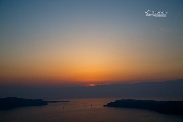 随着太阳逐渐落下,大碉堡处看日落的人群中传来了欢呼和掌声,为这一天的结束喝彩~~~我们也伴随着日落,迎接在圣托里尼度过的第一个夜晚。由于住的洞穴屋,又是岛屿的最西面,晚上妖风阵阵,非常寒冷,于是也打消了看夜景的打算,早点休息了~~~
