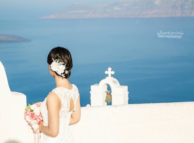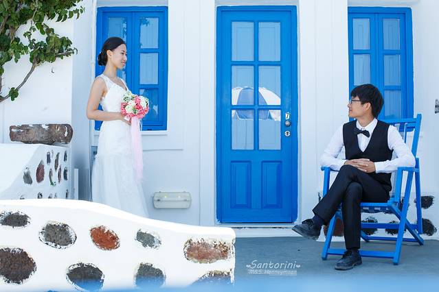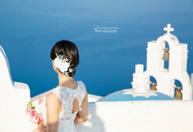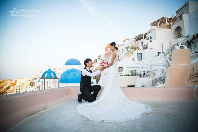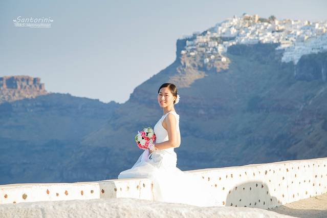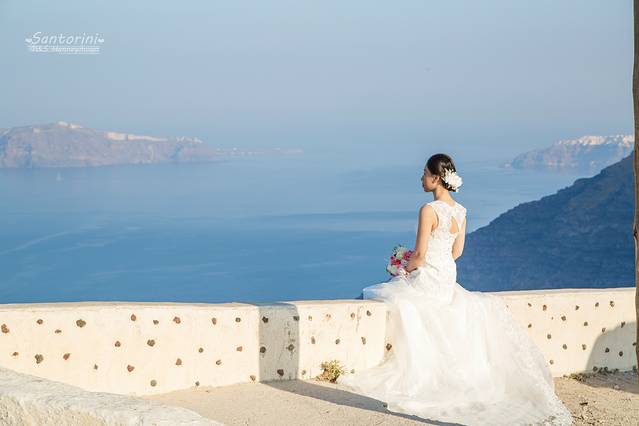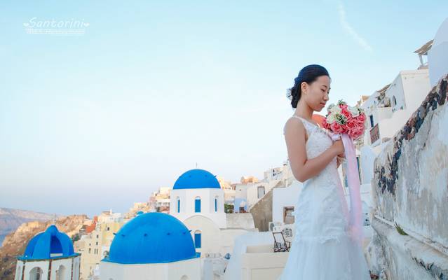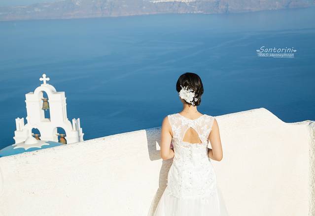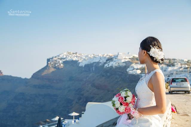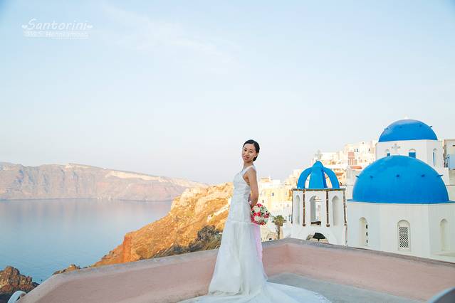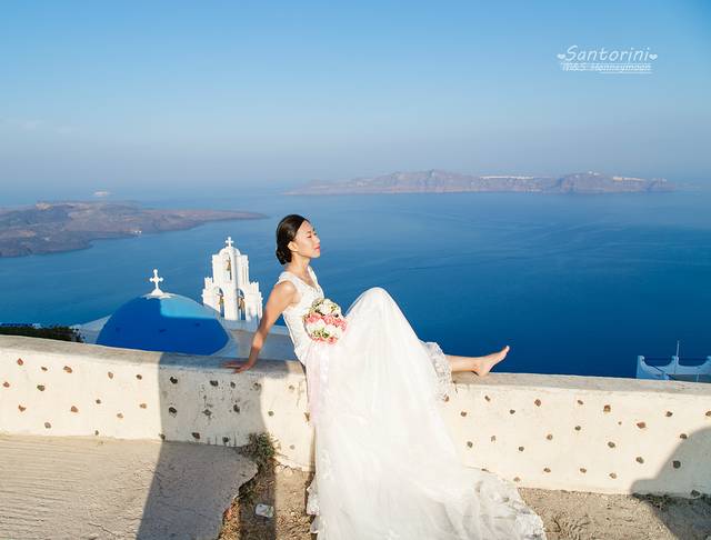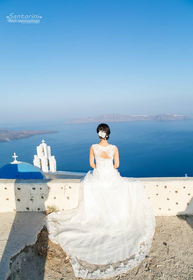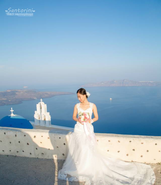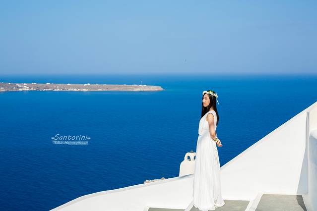 圣托里尼是个很适合拍摄婚纱照的地方,高高的悬崖,深蓝色的海水,洁白的房子,圣洁的蓝顶教堂,美丽而不失浪漫,来此度蜜月的小夫妻千万别错过机会,拍摄一套美美的旅行婚纱照留作纪念吧!!我们没有选择找当地摄影师拍摄,而是决定自带婚纱和道具,利用自有的摄影器材,拍摄一套属于我们自己的蜜月婚纱照,虽然拍摄过程很辛苦,但却非常有意义。