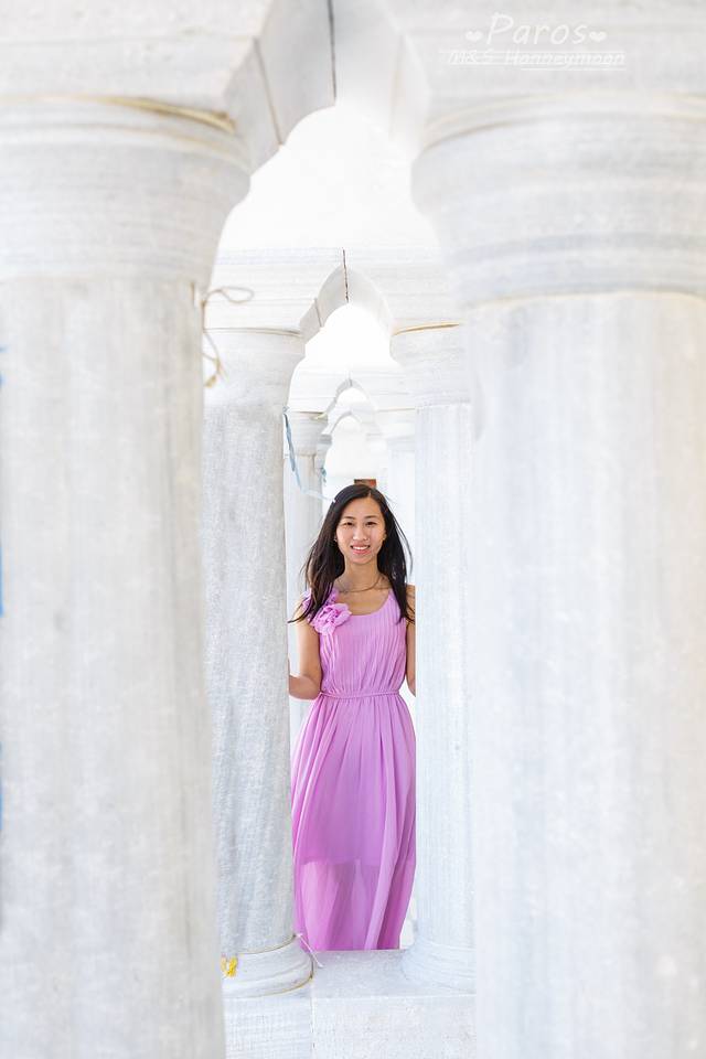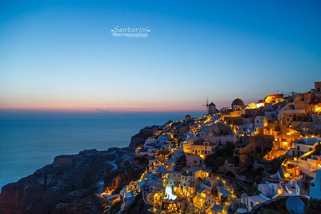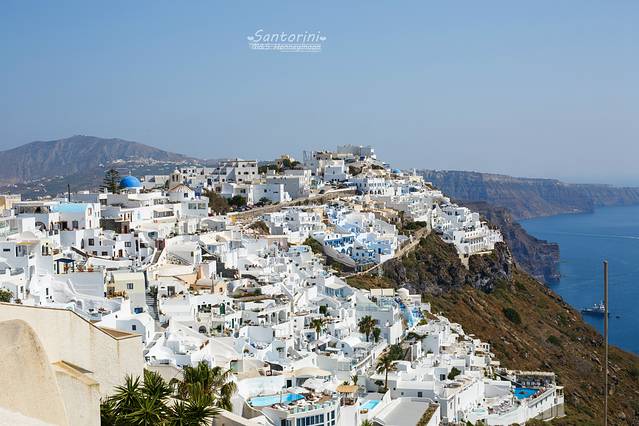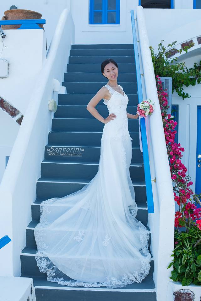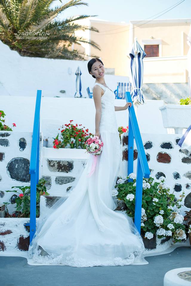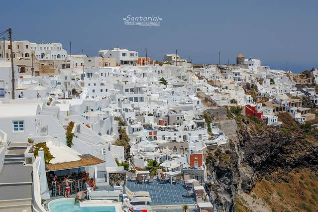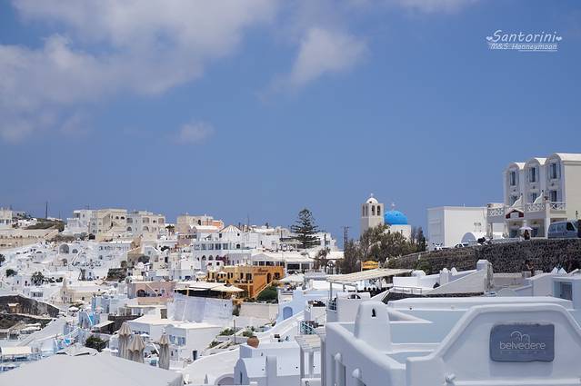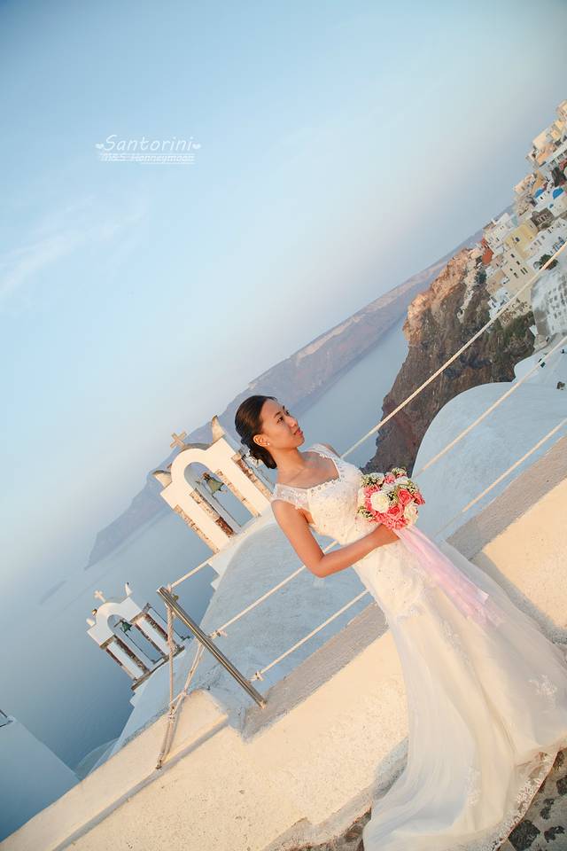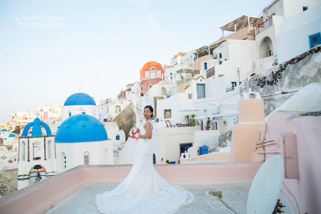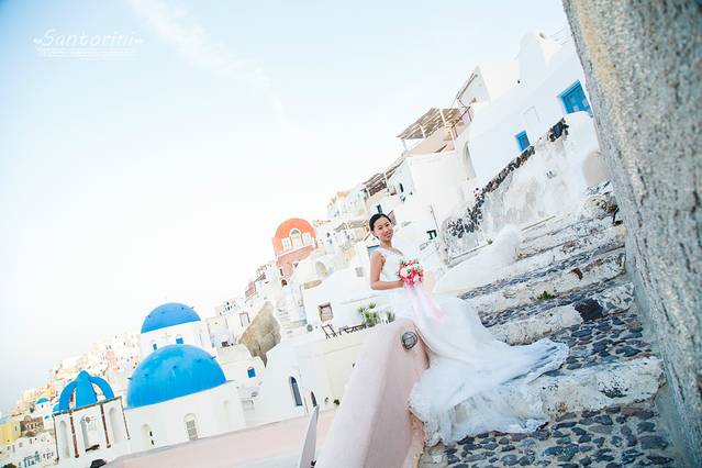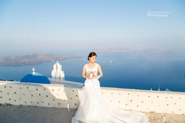 圣托里尼是个很适合拍摄婚纱照的地方,高高的悬崖,深蓝色的海水,洁白的房子,圣洁的蓝顶教堂,美丽而不失浪漫,来此度蜜月的小夫妻千万别错过机会,拍摄一套美美的旅行婚纱照留作纪念吧!!我们没有选择找当地摄影师拍摄,而是决定自带婚纱和道具,利用自有的摄影器材,拍摄一套属于我们自己的蜜月婚纱照,虽然拍摄过程很辛苦,但却非常有意义。
