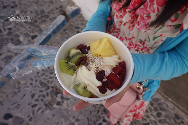 首先去希腊式自助冰淇淋店体验一把,店名叫Frozen Yogurt,冰淇淋自己打,分量自己掌握,各种水果小配料自己添加,然后称重计费,很有爱的小店。