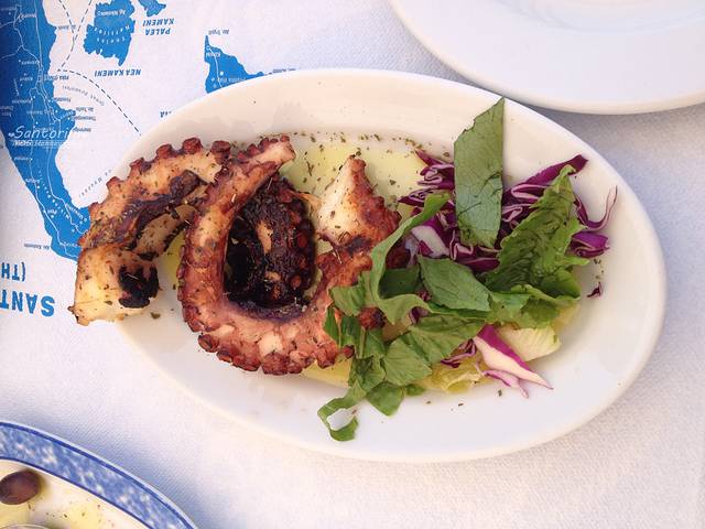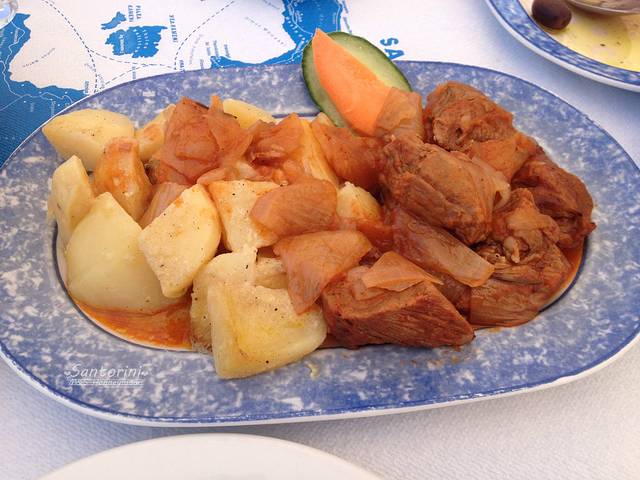 中午餐选在了很多人推荐的Mama‘s house,就在Fira 公交车站旁,吃饭期间满眼都是中国游客,几乎包场了餐厅的留言板上也很多中国游客的留言。餐厅味道还不错,但也没有攻略盛传的那么绝。