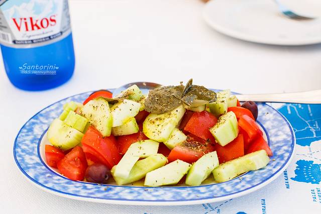 虽然量有些少,但味道不错,圣托里尼的物价确实比帕罗斯贵上不少,价格贵且分量也少了,这一餐吃了28€,仅仅是刚好吃饱。