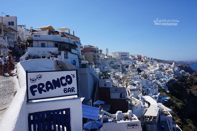 顺着悬崖步道一路下行,便到达了Fira,初到费拉就感到了热闹气氛,游客很多,各色旅行团充斥其中,其中也很多中国团队。我庆幸研究过攻略,没有选择住宿在费拉,不喜欢这样热闹吵杂的地方,还是大爱安静的小镇。