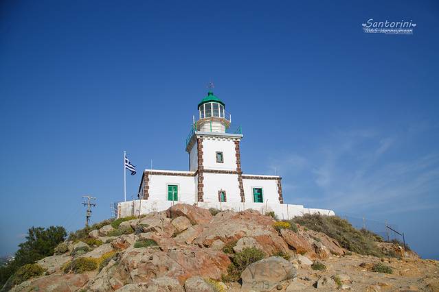 接着返回大路,往圣岛的西南角行进,去探寻最南端的灯塔。灯塔Faros位于圣托里尼岛最南端,被铁丝网围起来不能进入,但可以从不同角度欣赏它,并在其附近漫步,欣赏海景。灯塔附近很多悬崖峭壁和形态各异的怪石。这里风很大,也没有任何防护装置,几乎是在悬崖峭壁边行走,因此要谨慎,注意脚下的每一步。