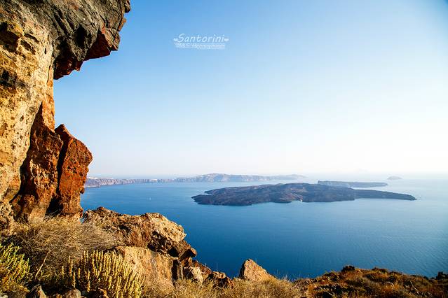 从岩石那头拍摄到的Imerovigli小镇果然有高高在上的效果~~~不亏为圣岛最高的镇子!!