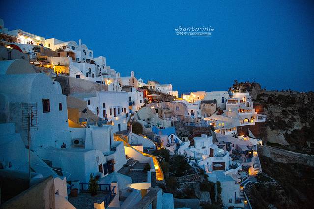 看过日落已经晚上8点半了,回酒店稍作休息后出来拍夜景。OIA镇的夜景也是美得不像话,不逊色于日落时分,难怪全世界各地的游客都慕名前来,相对其它爱琴海诸岛,圣托里尼的确是最独特的。