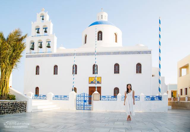 * 推荐可以利用一个整天来拍摄婚纱照,清晨在Oia镇拍摄光线比较理想,接近正午时分可以取景国家地理蓝顶教堂进行拍摄,正午蓝顶教堂没有阴影,拍出来会比较好看,而日落时分可以搭配红色晚礼服进行拍摄。