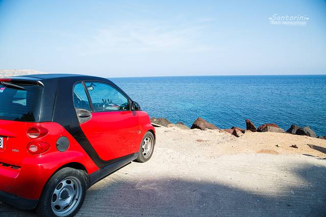 费拉镇前往伊亚镇的大路上靠近公交车站的地方,周围都是租车行,可以去多几家询问价格。我们租了两天Smart总共65€,但老板计算时间是按照自然天计算,而不是24小时,因此要求我们第三天的早上10点在费拉还车,我们觉得价格和时间也比较合适,也就没计较太多,就它了。之前看攻略都说圣托里尼租车不需要国际驾照,但据我观察,现在也严格了不少,我们开始拿出中国驾照老板不大愿意收,后来看我们有国际驾照,就要求我们出示国际驾照进行登记。因此要去的盆友最好还是在淘宝上买个假的国际驾照带过去,否则就吃哑巴亏了。