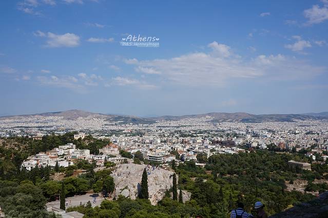 俯瞰雅典城,白花花的一片房屋,这个城市是没有高楼的,不像中国的城市是疯了一样得攀比谁的楼更高。