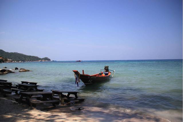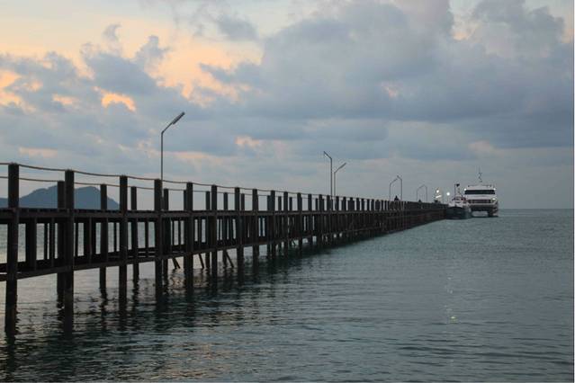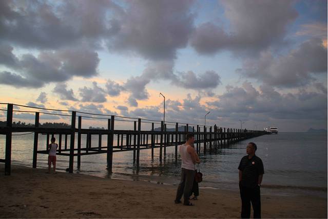 今天睡到自然醒,退房,坐着BANS的车去了码头,这次就不是免费了,每人50B.龟岛的码头只有一个,所以不会走错,但L公司和S公司的PIER隔的还比较清楚.我们提着行李到了S公司,很多人都在等船,洋人很多,亚洲面孔很少.也要CHECK IN然后换票,还给个贴标,但很容易掉.工作人员也会问你去哪,在行李上绑上不同颜色的绳子,他们会统一搬上船,服务还不错,很多人都是帕岸参加满月派对的.大概下午4点左右船才来,S公司的是慢船,从里面的设施来看也是日本的二手货,但质量应该没问题,舒适度尚可,就是我们选的位子正好朝阳,太阳很毒辣,有点受不了,最后我们跑到了二楼的平台上,外面海风吹吹其实还挺凉快.大概开了1个小时40多分钟的样子先到了帕岸,下去了好多人,上来的也有,但明显少很多,短暂停留继续开到下一站南园,大概又过了半个多小时吧到了南园岛,非常小的一座岛,据说是私人小岛,上岛要收费.到了南园岛离苏梅就很近了,两个岛是挨着的,过了大概20分钟到达了我们的目的地苏梅.这是到达的码头,离开苏梅的码头在另外一个地方.离这个码头不远的地方可以看到一座大佛,也是个景点,但我们没去.