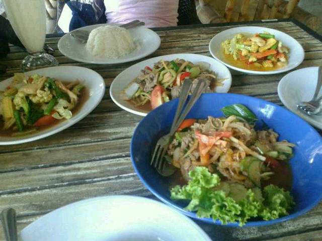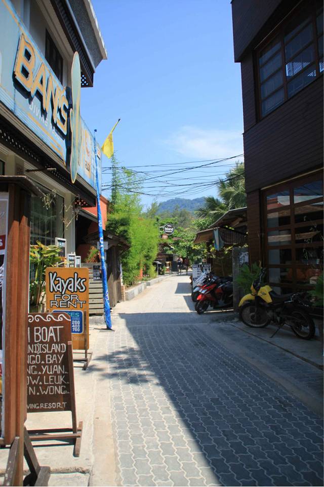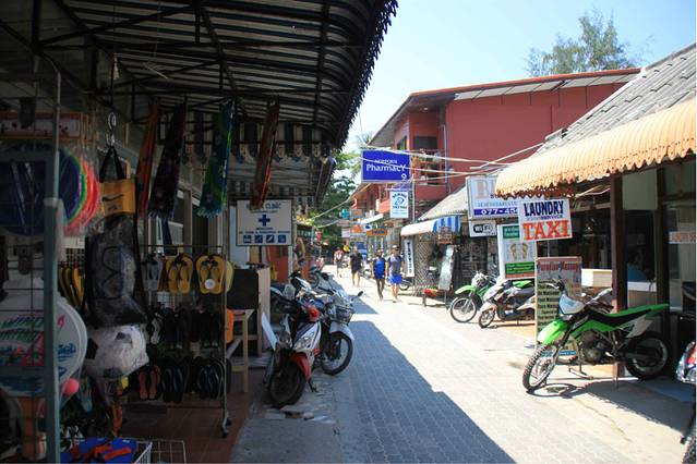 出了码头我们拿着PICK UP的车票去找工作人员,非常好找,工作人员看过票后会告诉你上哪辆车,然后你告诉司机你要去的酒店就行,我怕司机的英文不好我提前在BOOKING上把酒店的信息打印出来了,上面有泰文的,司机一看就明白了.车不错是日本丰田的商务车,很新,车内情况也不错.觉得这一人100B挺值的.司机一路开的弯弯曲曲的,大概开了20分钟才到酒店,同行的人都说这100B的确值了.哈哈.到了酒店就CHECK IN,都洗了个澡,晚上出去觅食,我们在热闹的查汶海滩,地理位置不错,但又不是在最热闹的地方,晚上不会很吵.走到最热闹的地方大概也要走10多分钟.