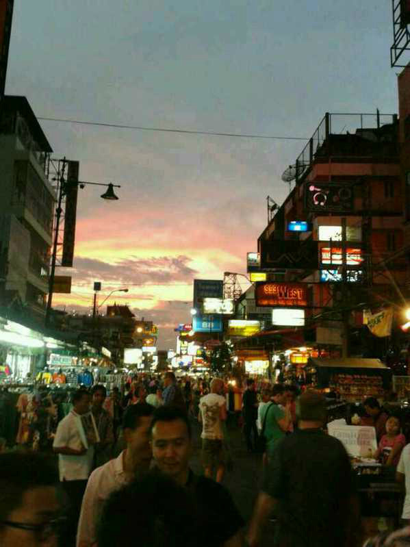 因为路线是之前就定下的,所以就按照事先定好的方式去考山路找代理买票了。从喜莱登酒店的正门出来让酒店的服务生叫的车打表去考山路。这里要提醒大家,曼谷的出租车遇到外国人很不喜欢打表,但强烈建议大家一定要让他们打表,因为不打表的要价往往是打表价格的一倍往上。比如从喜莱登打表去考山路只要89B左右,但第二天我们退房去考山路坐车的时候,那个司机要价200B,我们果断要求他停下换车。坚决不要助长这种不良之风。另外如果你要是在景点打车的最好出来后走一段路远离景点在打车,这样打到可以打表的车的机率会比较高一些,特别是象大皇宫这种景点.