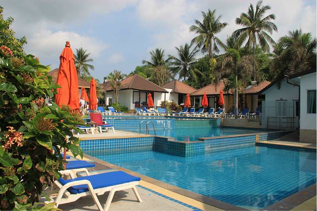 苏梅岛的住宿着实费了一番心思,比较来比较去在BOOKING上订了Chaweng Cove Beach Resort这家酒店,三星水平,但房间非常的大,服务也不错,房价中含早,酒店的餐厅出去就是查汶海滩,非常的方便.当时犯了一个小错误,预订的时候是两个人,但我们一行是三个人,忘记了一个人应该在外面猫着,三个人一起去CHECK IN,结果酒店的前台一定要求要付三个人的钱,还好也不是很贵,我们也就欣然答应了,这样三个人都有早餐了,也不算贵,人均1750B的样子.