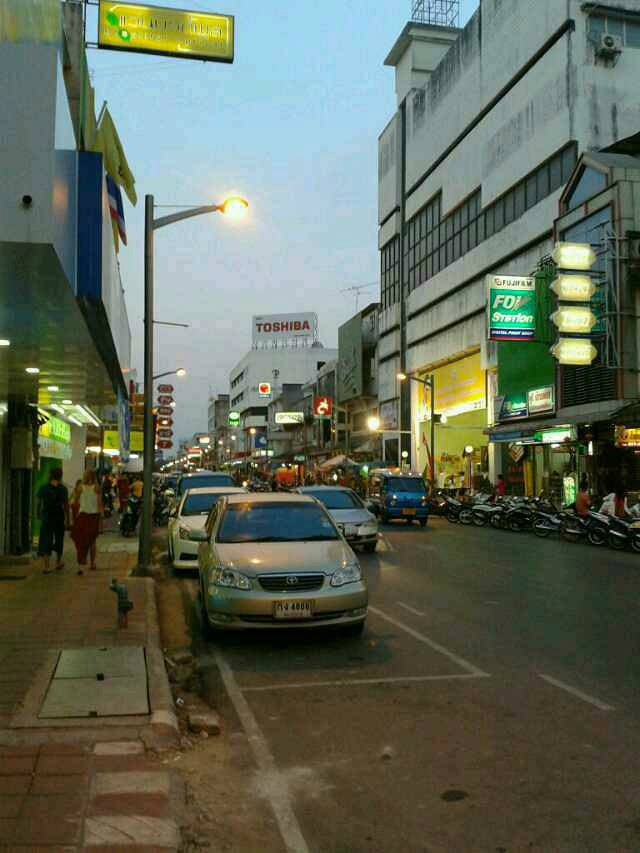 这次的时间算是最准时的,也是个慢船,在船上小睡会儿,大概过了两个小时到达了素叻他尼的.到了码头已经有好多车都在等着了,有去火车站的,去机场的,问了工作人员去DOWNTOWN的车也是辆小车,人不多.去火车站和机场的人最多,去城里的加上我一共才5个人.车到城里大概开了有1个多小时,感觉还挺远的.一般游客都不会在这里过夜,这里只是个中转的地城市.到站后就开始找我的酒店了,初识这个小城市感觉很旧,很平淡