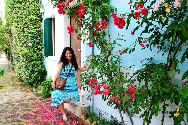 到达小岛的时候,刚好飘来一朵乌云,暴雨洗涤了这个小岛,瞬间乌云褪去,刷干净的岛上色彩鲜艳欲滴,更加明艳。岛上的每一户人家,在门口是要挂上一个与房子颜色相匹配的窗帘,如果有窗户的,还会摆上一盆盆鲜花,或是在窗户边插上盛开的雨伞。窗外的摆设可以看出主人精心布置和修饰过,仿佛是把屋内的美也绽放在外面。