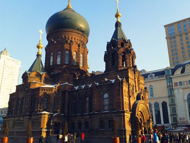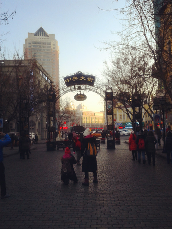 步行街据说有1000多米,都是石头地面,两边有很多俄罗斯商店和餐厅,还有很有名的马迭尔冰棍,对面的面包店门前排了很长的队。因为太冷,我们都是走一会就赶紧进路边的商场逛一会暖和一下。对了,这条街上还有种很奇葩的饮料——姜汁可乐。因为唐先森誓死不让我乱花钱,所以很可惜失之交臂,有兴趣的可以自己买瓶可乐熬点姜汤试试。还有很多卖烤红肠和糖葫芦的,味道很不错~