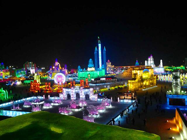3、提前一点去排队!!!在冰雪大世界的最里面有一个很长很长的冰滑梯,我们7点半到那里时队伍已经排了百米有余。工作人员说一分钟只能滑4个人,9点就不让玩了,所以不让我们排了。实在是很可惜。