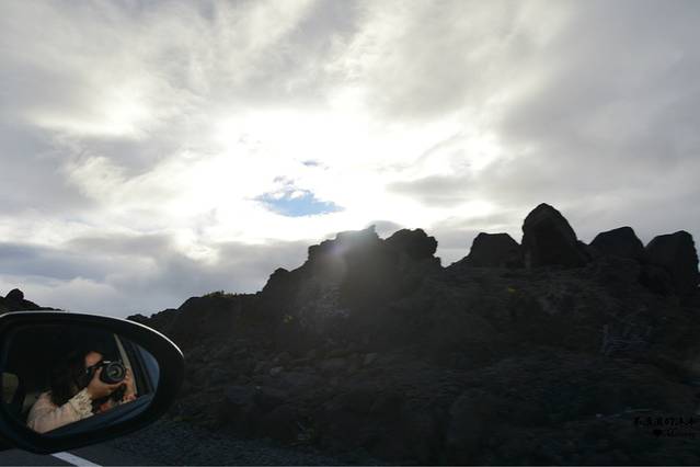 爬火山的过程中,因为天气不是很好,一直乌云笼罩,突然发现一点阳光,很激动!