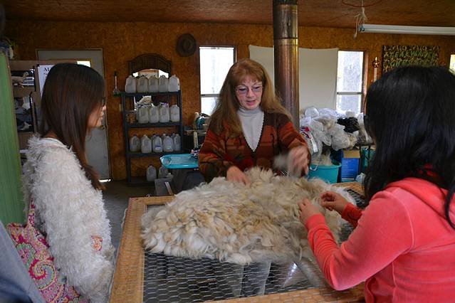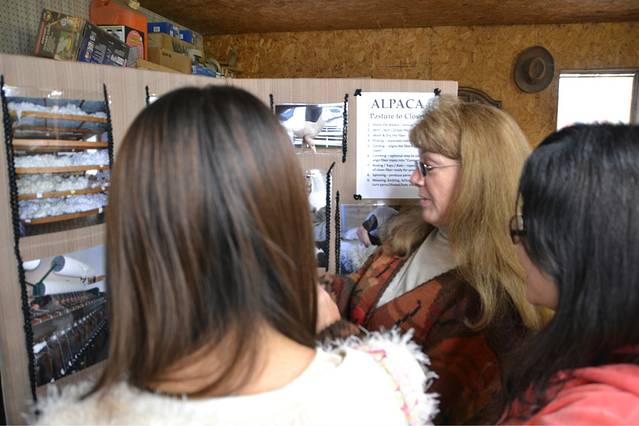 首先Cier带我们到了她的工作作坊。这里面堆满了草泥马的毛。她说她是从2006年开始养草泥马的,之前一直养狗狗。现在美国渐渐出现了很多草泥马农场,每只草泥马都有DNA,都可以查到他们爸爸妈妈去从哪里来的。这里以前是狗狗冬天休息的地方,现在她打算改装成草泥马studio.(工作坊)。
