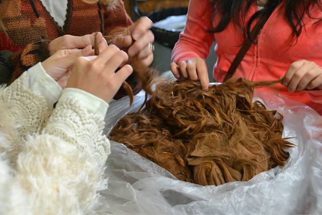 每个草泥马都有不同的颜色,草泥马的毛能细分为200多种颜色~不同颜色的毛收集起来以后送往中国做成袜子和衣服(好吧,中国就是喜欢干这个的)~这是白色马马毛~这个筛子会把小毛筛走~