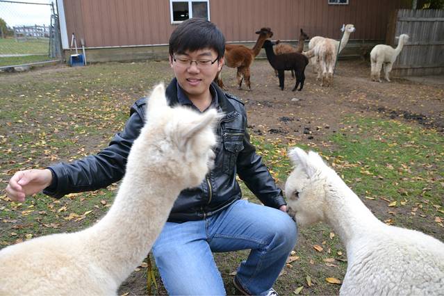 上周日中秋节是全美羊驼(Alpaca)欢庆节,很多美国农场近几年从南美引入了大量的羊驼,于是这个神奇的物种就繁荣昌盛起来~起初,很多朋友都会惊讶,原来各种被调侃被做成各种表情的草泥马是只真的。。没错,它的确是真的动物,从我的经验来,他们特别可爱~特别温顺~只要人类不作出过激行为,他们是很亲人的。下面先科普一下: