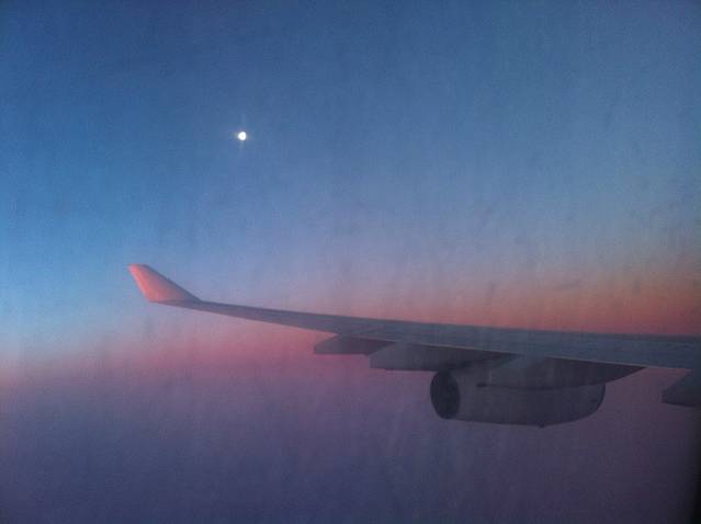 这一路上我一直不停的睡,每次醒来的时候,打开小遮板儿向窗外拍一张照片,还挺美滴,这代表了偶期待滴心情吧。。。
