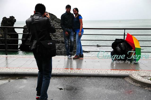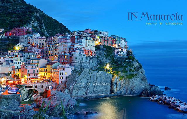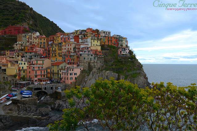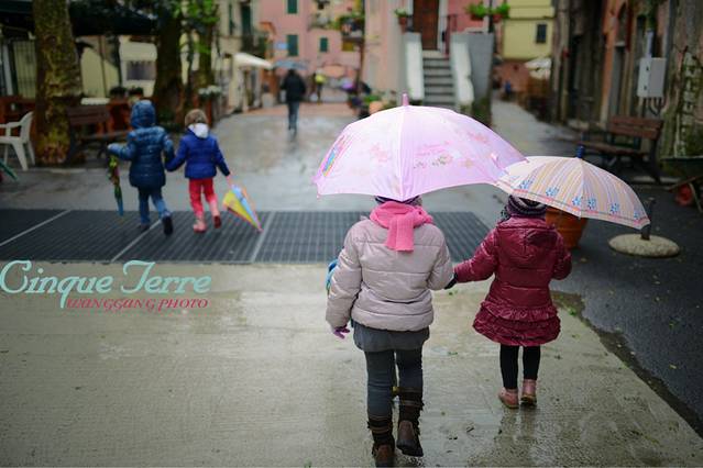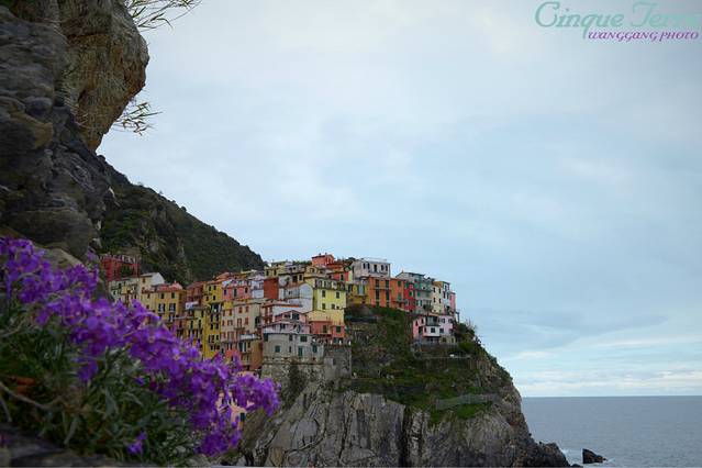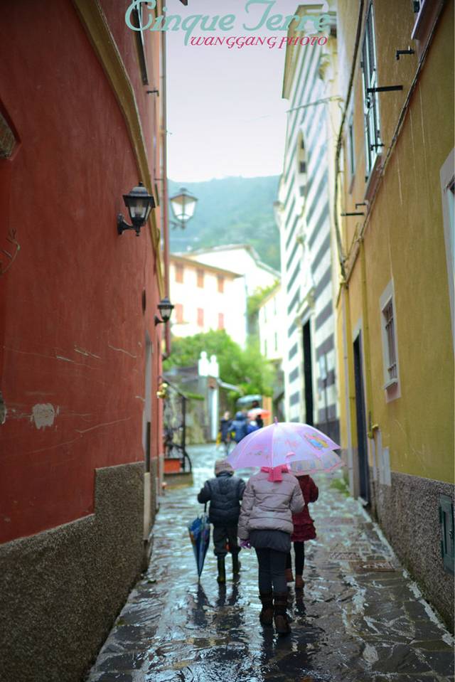 随后我们来到了常在明信片上出现的地方,五渔村最美丽的马纳罗拉(Manarola),到达M村,雨一直在下……