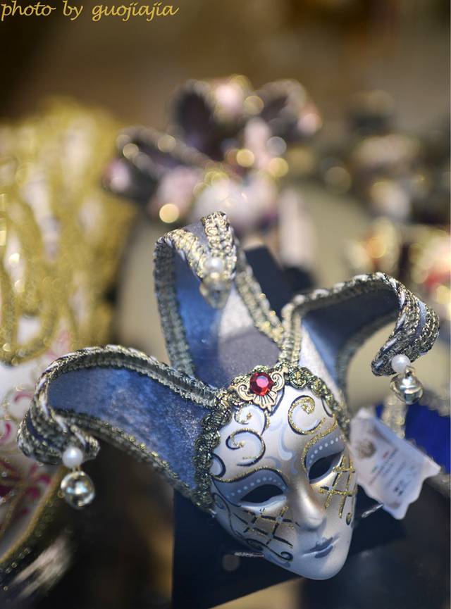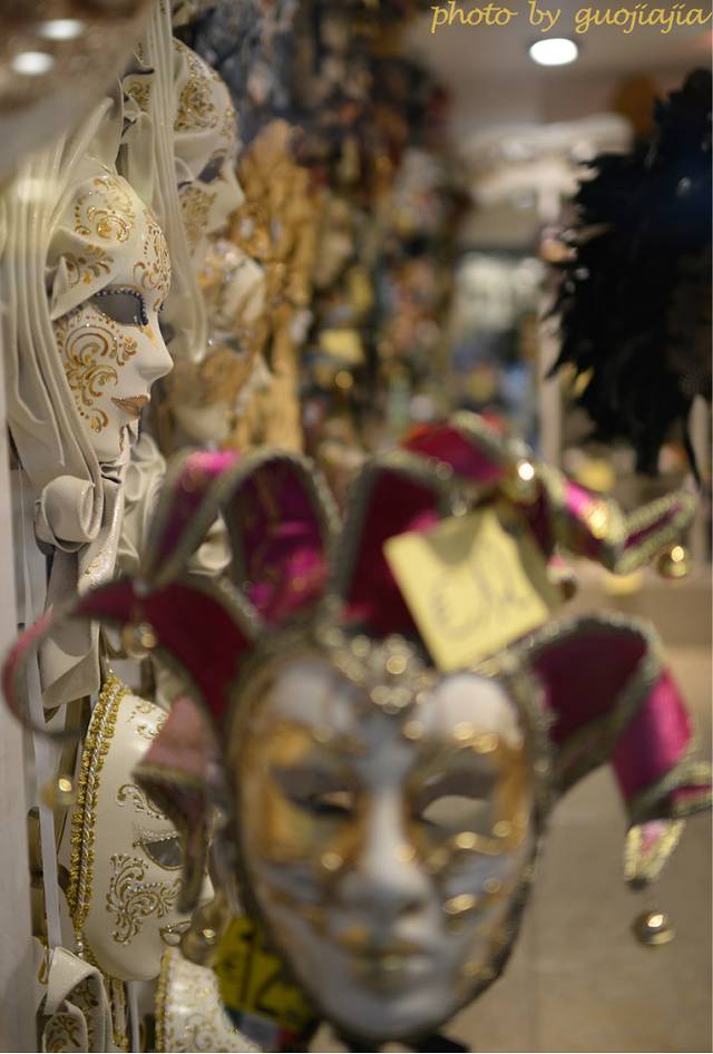 草草吃了晚餐,我们又出发去了圣马可广场,这时华灯初上,还下起雨来,小店的橱窗也亮起了灯,我一下就被橱窗中琳琅满目的威尼斯面具吸引了,真的太炫了!