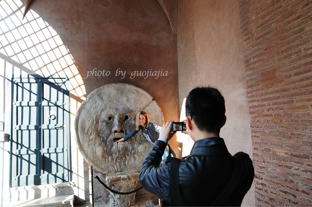 我们眼看就按照地图找到斗兽场了(找到后才发现),问了一个本地人,她给我们指路又跑偏了,我们绕了一大圈儿,又问了2个人才找到,真理之口是一个教堂的门外,一群人在那里排队等着验证真理,哈哈……排队的时候,一个美女请偶滴御用给她拍张照片。