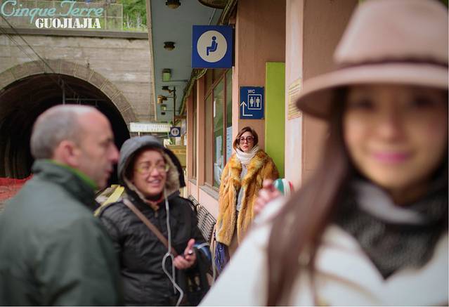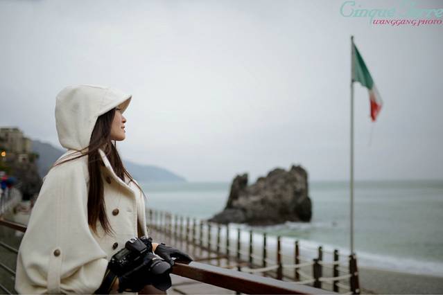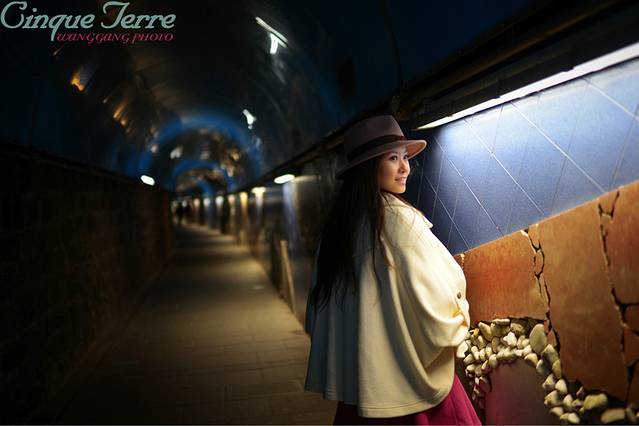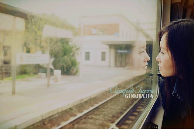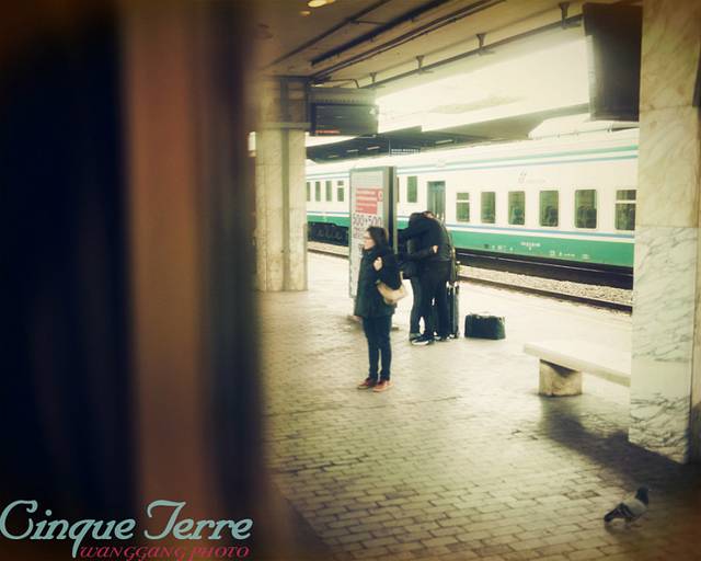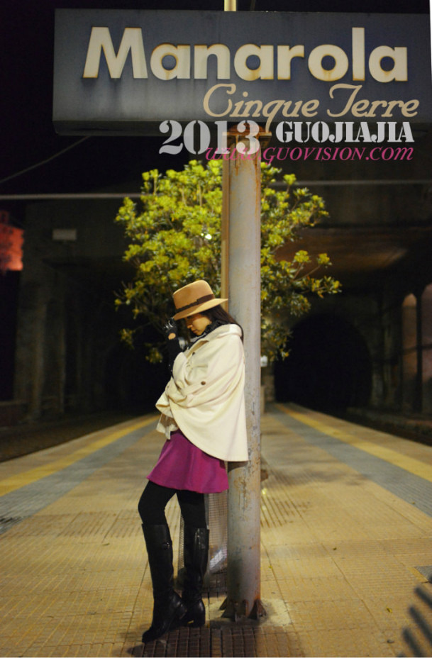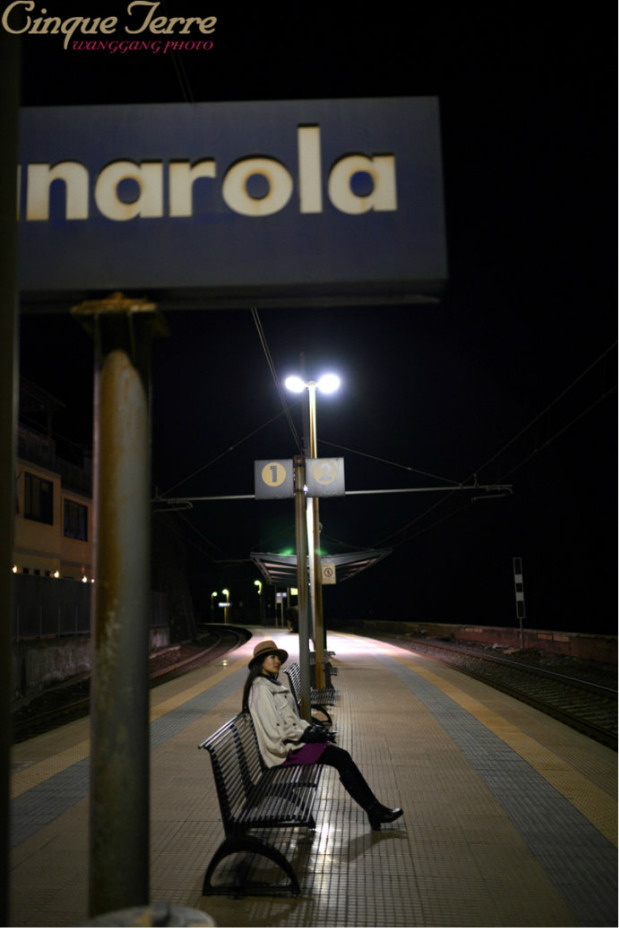在Manarola拍完夜景,天已经黑透了,我们两个在车站等车,怪慎人的,拍照解闷儿。