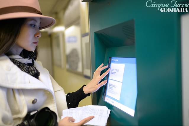 我们买的是村与村之间的票,先去了韦尔纳扎(Vernazza),买票可以在售票机上自助操作,英文界面,很简单。输入你想去的地名,选择好时间,投币出票。候车室里有个电视屏幕上有显示等候的站台。上车前记得打票。