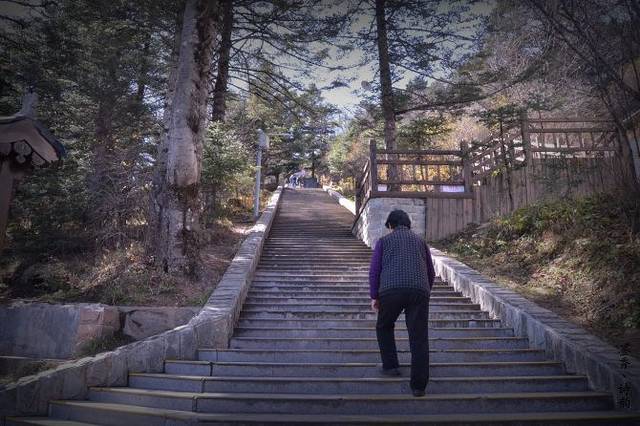 不得不说太白山景区的路标及相关设备做的很全面周到,台阶刚走不久,就能看到远处的缆车,想打击我的登山信心,让我坐缆车上山吗?没门,哈哈。