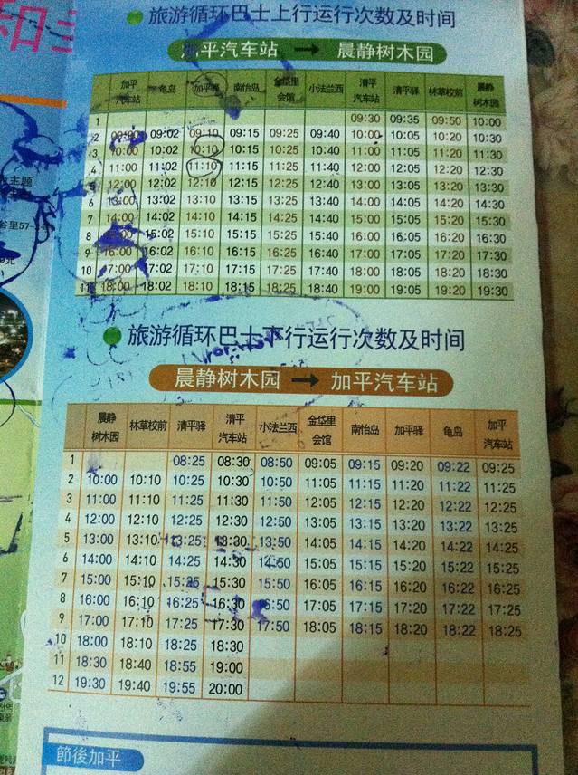 {加平旅游循环巴士}是一天内在下面站点循环停靠。