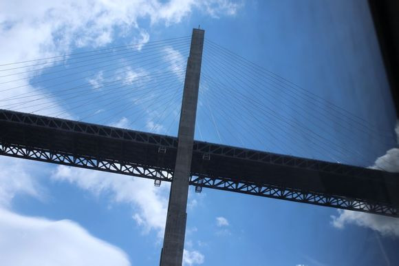 去往赛里木湖的路上在车窗内的仰拍—果子沟大桥