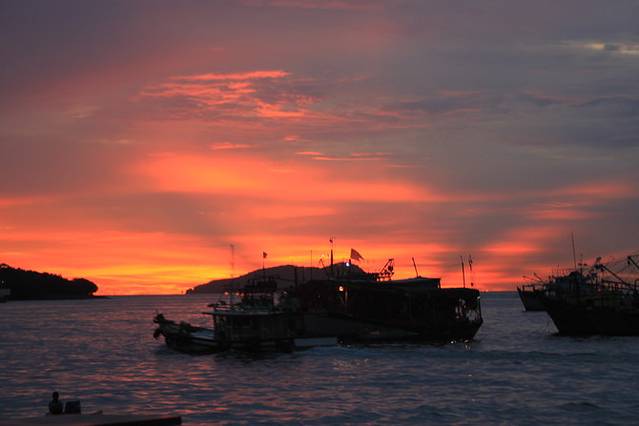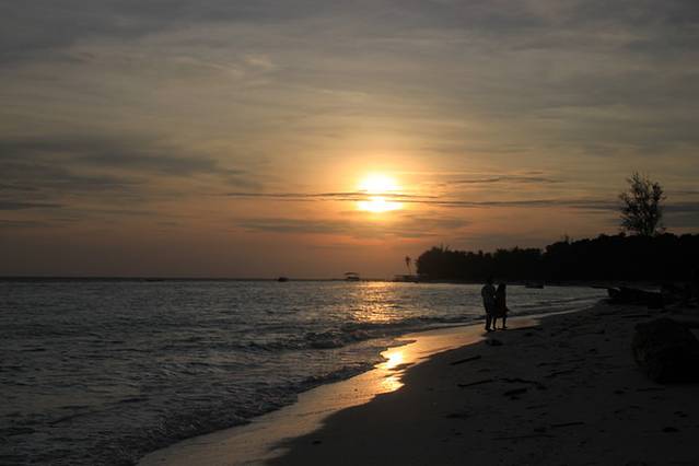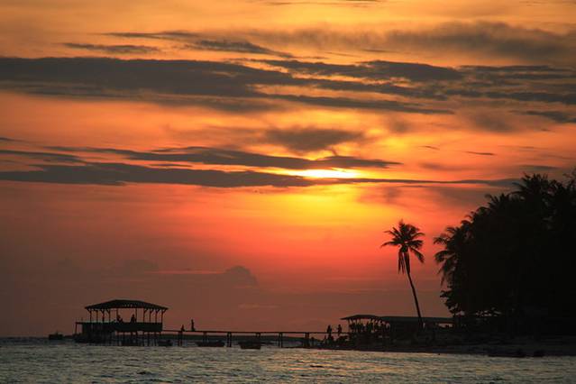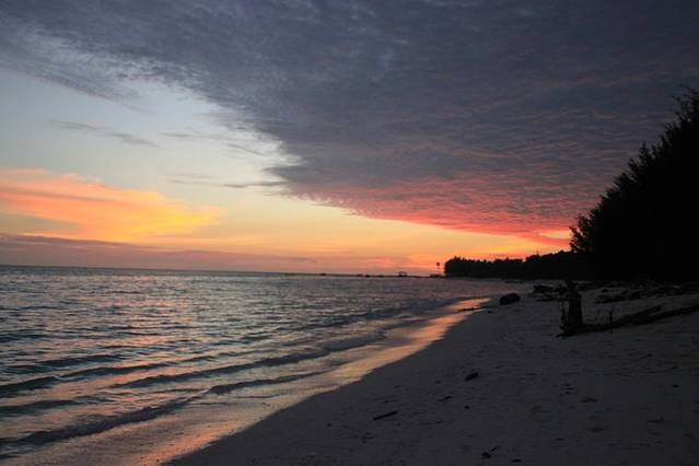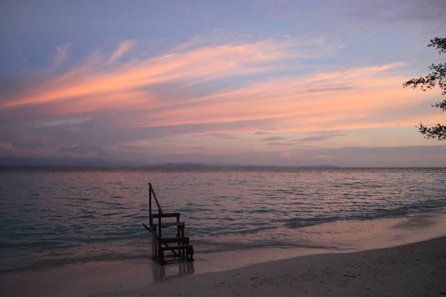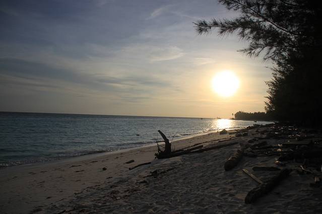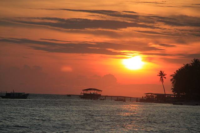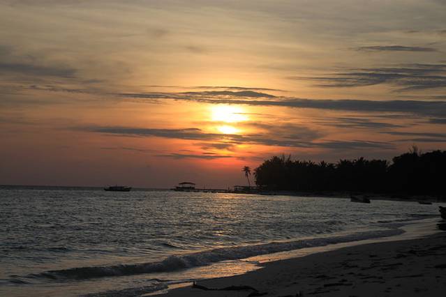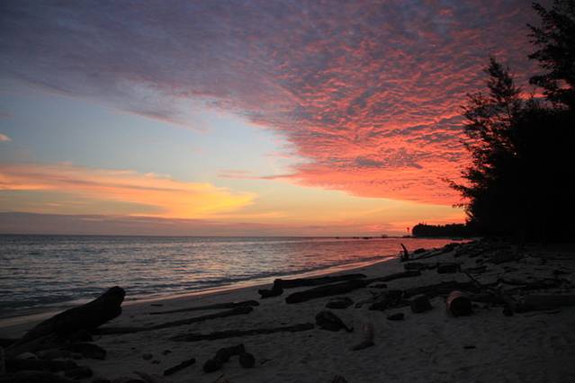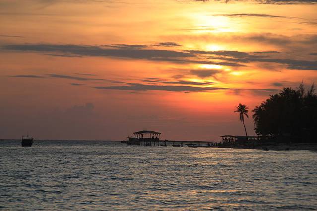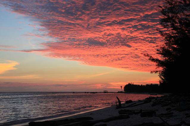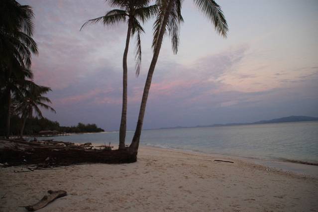 咋样,还不错吧,下面还有更好看的,不要走开,广告之后更精彩。哈哈。其实也没有广告啦,美人鱼岛的美不仅仅是它的海水和沙滩,更多的是原始与纯净,其实美人鱼岛的沙滩上有很我的木头,都是从海里漂到岛上的,没有人住的地方也没有人清理。但这就是美人鱼岛的魅力所在。到了下午差不多4点多的时候一日游的游客就要返回了。岛上就剩下我们这些住客了,在加上一些当地人,一个度假村不会超过30个人,相比国内拥挤的景点,这里简直就是天堂。到了傍晚的时候看到了美丽的晚霞,大家不要惊呀,这里是沙巴的美人鱼岛,不是马尔代夫。更幸运的是我们住在美人鱼岛三天两晚,两个晚上都看到落日,天气都很好。