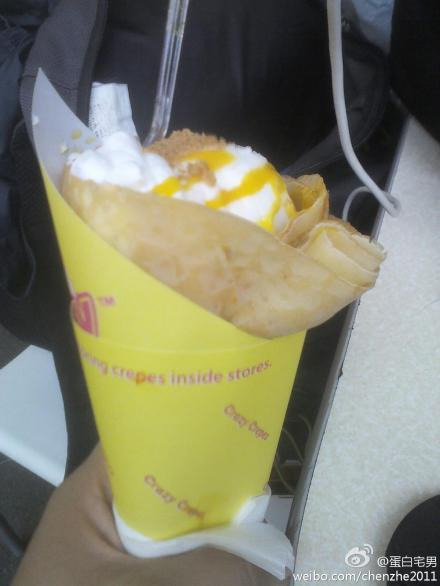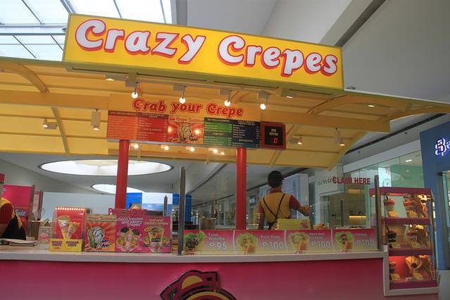 大概10点多小伴们觉得实在无聊,就准备去SM逛逛了。马尼拉治安不好,但一整天时间,最后选择离机场较近相对安全的SM逛逛。有吃有喝还有逛。走到T3的出发大厅打车,有辆白色的大车,直接跟司机谈价格,司机开价200P,上车。上车后司机看到我们五个人,说要加50P,也没跟他多罗嗦,就答应了。路上司机还善意的提醒我们要把车窗门关好,说有人会抢劫,把小伙伴们吓的不轻赶紧把所有的车窗车门关好。大概20分钟才开到SM门口,下车拿行李给钱,一切顺利。对于这个打车价格小伙伴们大呼便宜。先去找行李寄存的地方,SM寄存行李是免费的,这点很方便。然后就是在SM里各种逛,各种买。很快就到了午餐时间,先来了餐前小点。应该就是可丽饼吧,我点的芒果味道的,记得好象是105P,价格不贵。这个在上海也有,味道不错,外层的面饼很软,里面有奶油冰淇淋还有大块的芒果,味道不错。