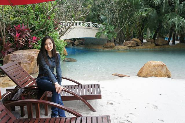 忘年交帮我拍摄的酒店花园里-