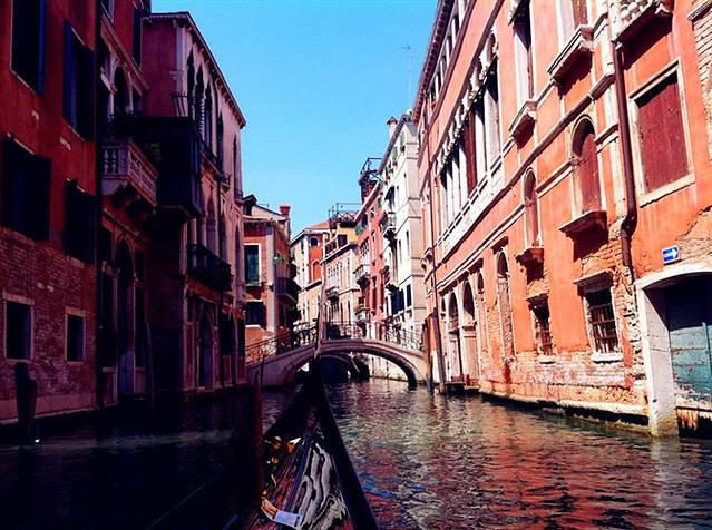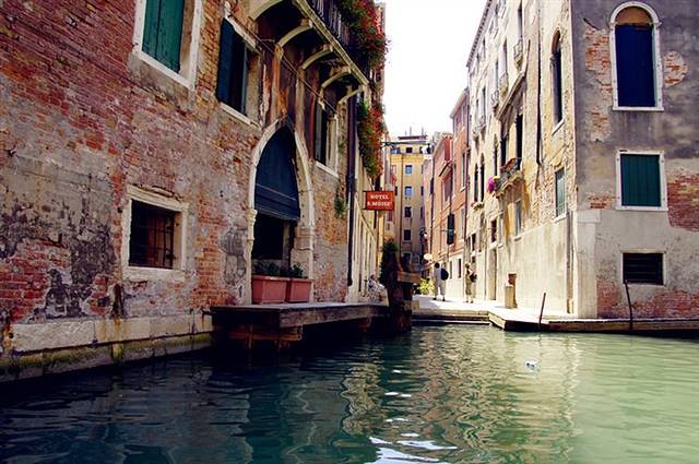 坐在贡多拉上看这座古老美丽的水城,蜿蜒曲折的巷子深处,年久失修的房子,华丽的外表掩饰不住她的苍老与落寞