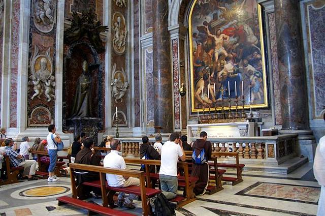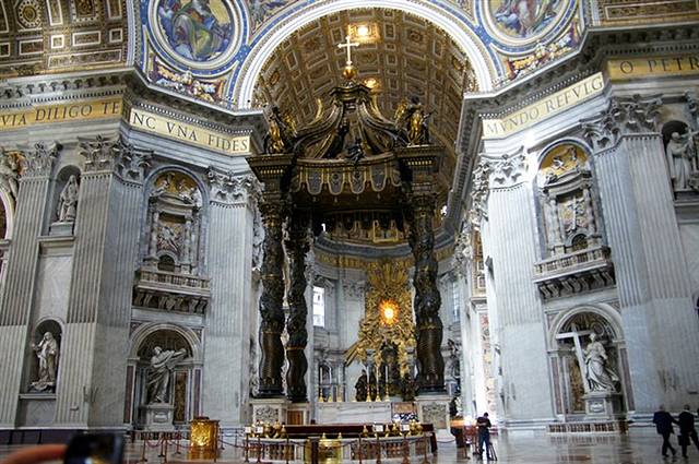 圣彼得大教堂是世界上最宏大、最壮丽的天主教堂,建于16世纪,可容纳六万人以上。这座教堂由文艺复兴时期众多知名的建筑师、艺术家参与设计,包括米开朗基罗、拉斐尔、布拉曼特等。教堂中央是直径42米、高约138米的穹顶,壮观无比,而前方则是由贝尔尼尼设计的圣彼得广场。