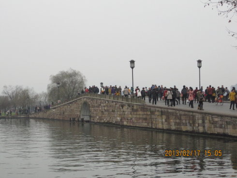 白堤倒头就是断桥了。冬天来应该能看到断桥残雪的景象了。