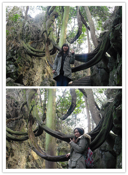 然后没对象的又要伤感了,这个由古树藤蔓绕成的貌似是同心结还是什么的,寓意在天愿作比翼鸟在地愿为连理枝。淼哥说,以后有男朋友了你再来拍~