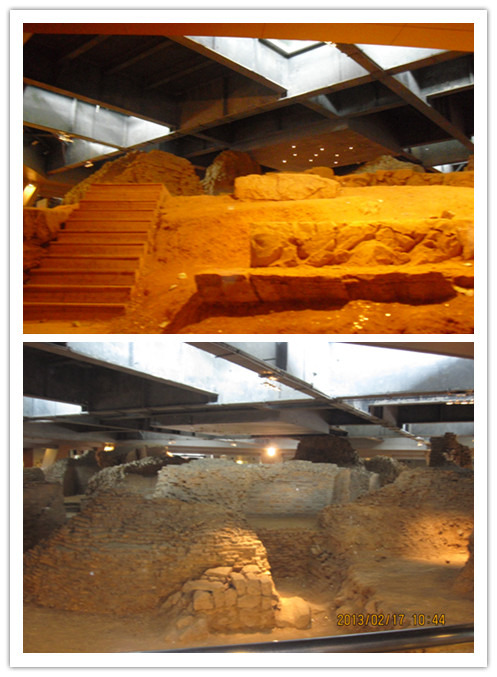 一层和二层都能看到原雷峰塔的残骸