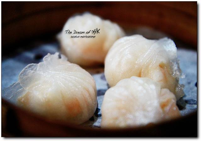 晶莹鲜虾饺。里面都是大虾,料十足。我最爱的港式点心。(添好运餐厅)