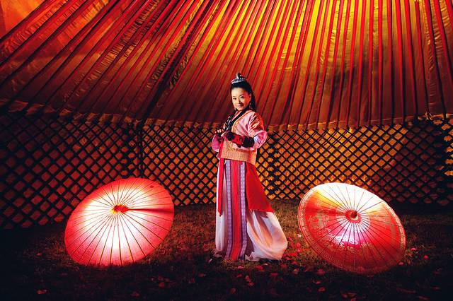 看到那里剧组景的蒙古包临时决定这造的,过了一把赵敏瘾