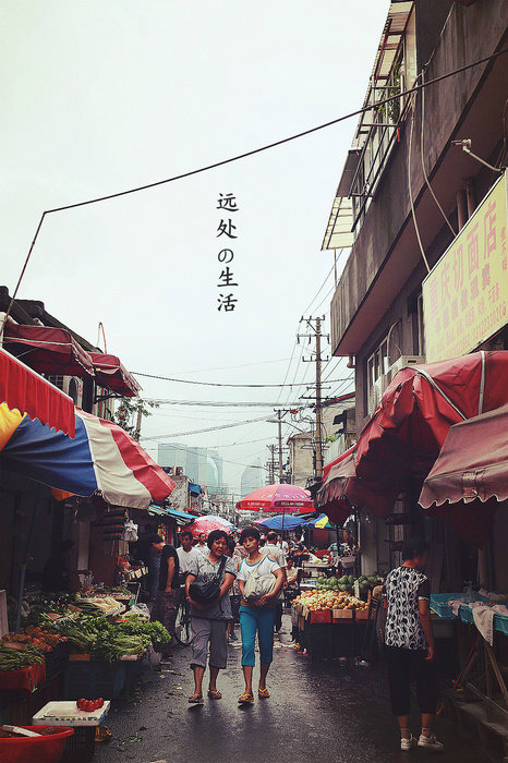 这里依旧是市井的菜市场, 远处阳光下伫立着闪耀的高楼. 或许, 有期待, 生活才会有意义吧