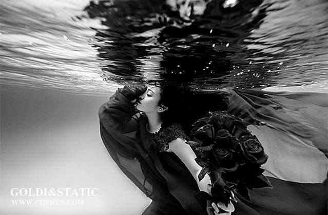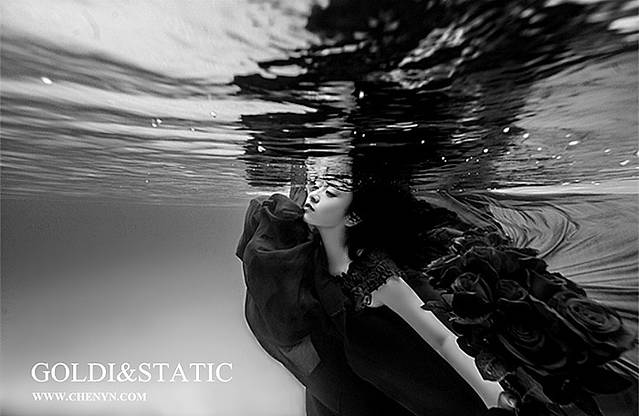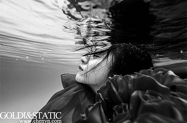 最后还是被摄影师和化妆师一手往下拉,一脚往下踹才下的水。
