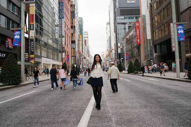 我们在银座街头拍了一张到此一游照就匆匆飞奔去购物了!