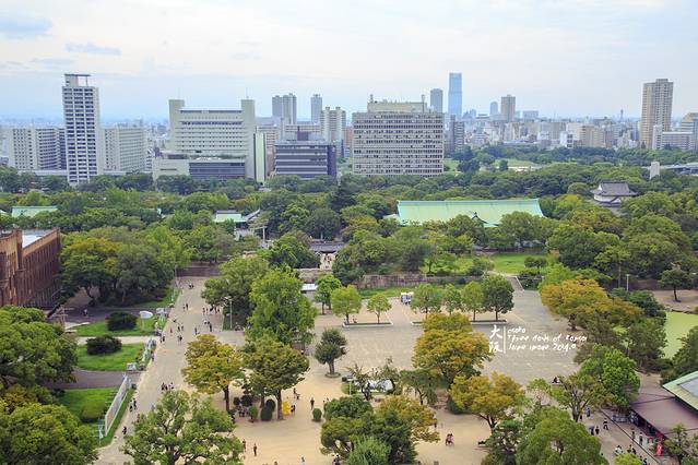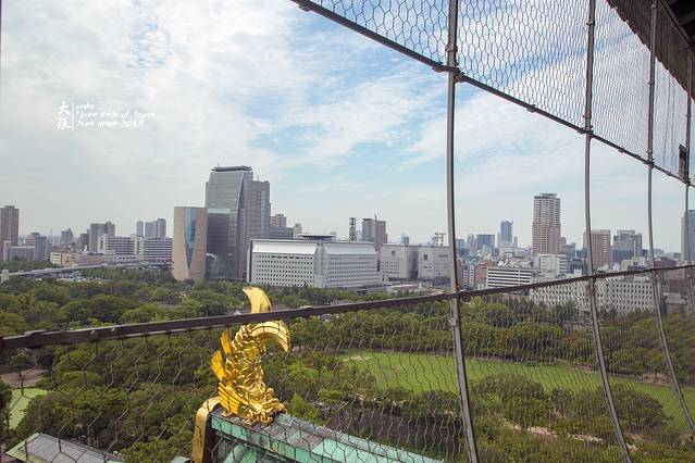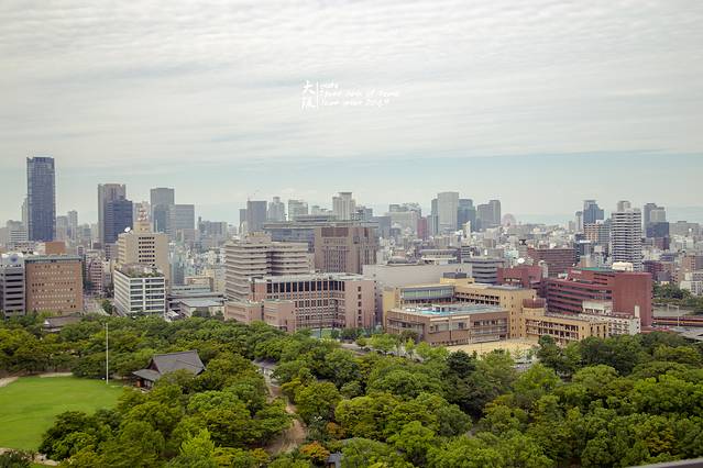 登上天守阁的顶楼,远眺下大阪的景色。