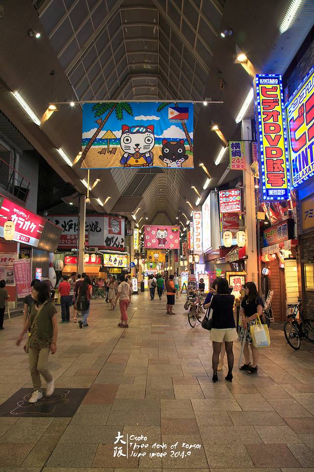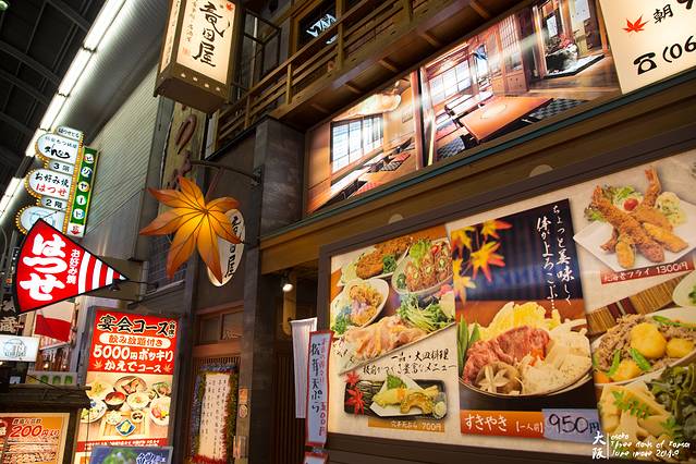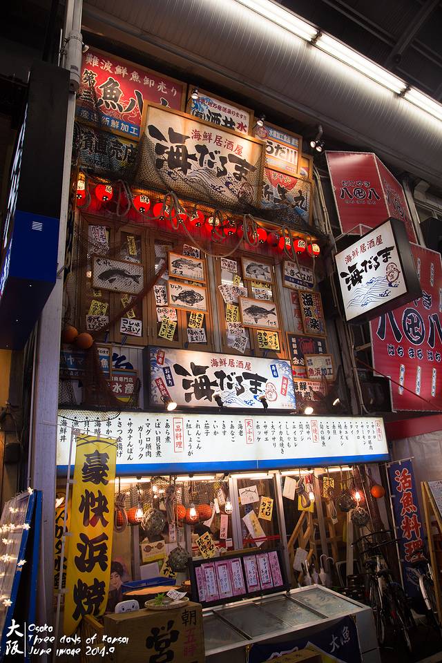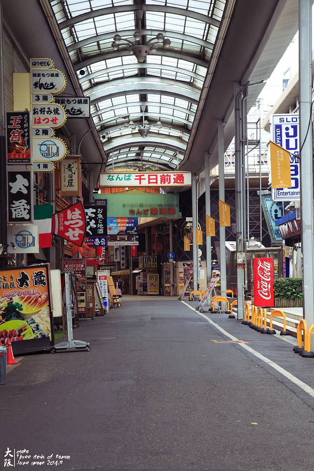 仍然沿着千日前逛回酒店。各种装潢精美的食店。经过后来的考察,千日前食店的价格普遍比道顿崛、梅田低。回转寿司100日元起。